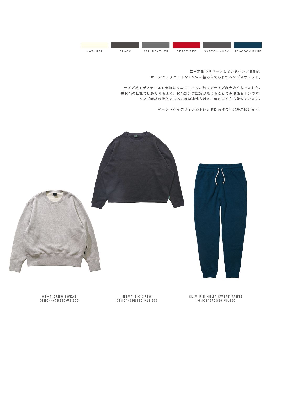 - HEMP CREW SWEAT(GHC4467BS20)¥9,800