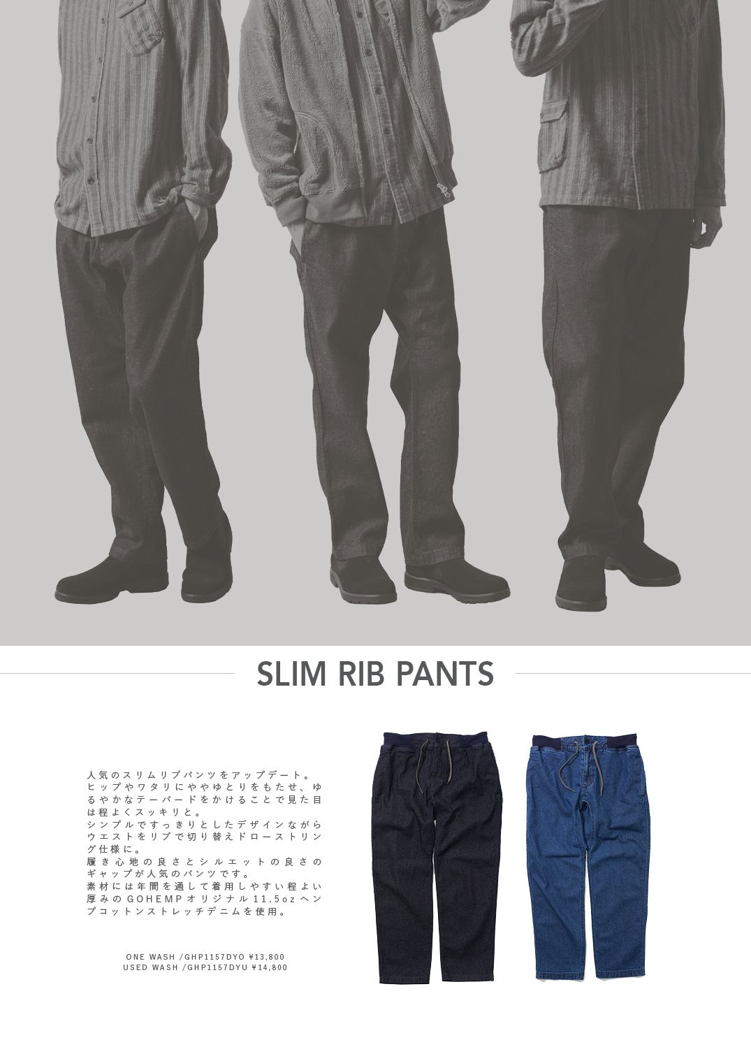 - SLIM RIB HEMP SWEAT PANTS(GHC4457BS20)¥9,800